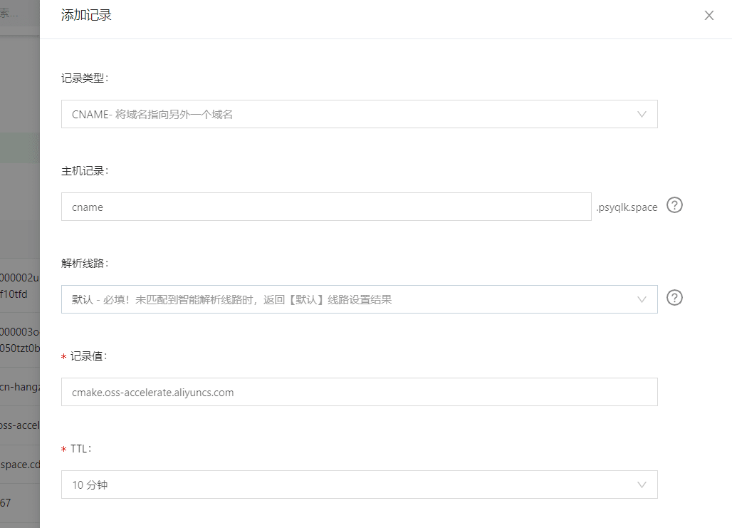 在记录类型中选择CNAME,在主机记录中填写想设置的三级域名名字,在记录值中粘贴刚刚复制的传输加速访问域名,点击确认。记住这里设置的主机记录的名字,和域名合起来就是最终部署的网站地址啦